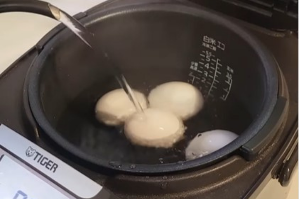 冷蔵庫から出したばかりの卵を空の炊飯器に入れ、熱湯を卵がかぶるほど入れて17分保温するだけという簡単な作り方に、称賛の声がたくさん寄せられました。