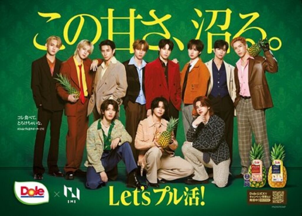 青果大手のDole(ドール)は31日、公式Xを更新し、パイナップルの魅力を伝える「Doleプル活サポーター」にグローバルボーイズグループ「INI(アイエヌアイ)」を起用したと発表しました。