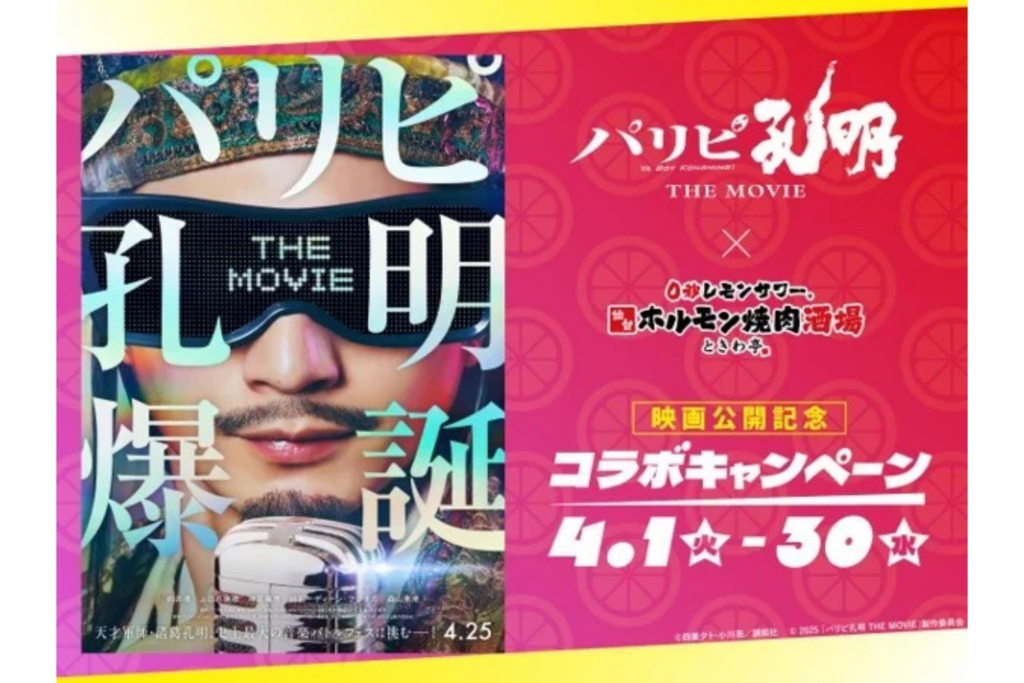 飲食事業を手掛けるGOSSO(ゴッソ)は24日、仙台の人気ホルモン焼肉店「ときわ亭」とタッグを組んで展開する居酒屋「0秒レモンサワー 仙台ホルモン焼肉酒場ときわ亭」と4月25日公開の映画「パリピ孔明 THE MOVIE」とのコラボキャンペーンを4月1日~30日までの期間限定で開催することを発表しました。