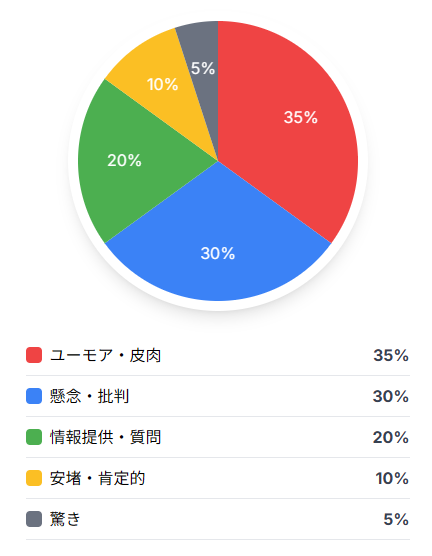 今回の分析では、起きた事案に対して心配する声があった一方、健康被害がなかったことへの安堵や、言葉遊びで状況を和らげようとするコメントも多く見られました。