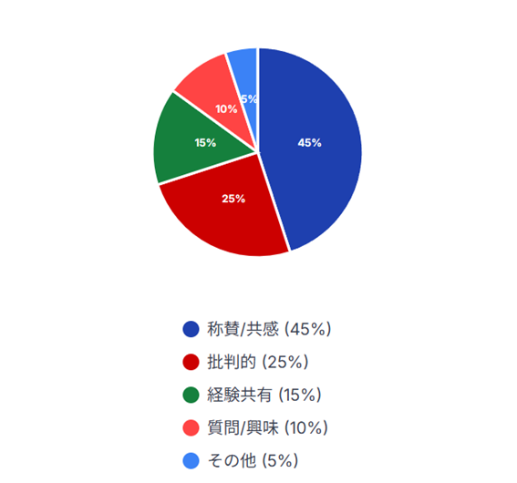 今回の分析では、リュウジさんのおせちツイートに対し、「リュウジさん男前!」「料理する人の味方」といった称賛や共感の声が多数寄せられました。Xユーザーパートナーの「自分で作れ」発言には批判が集まりつつも、おせちを買う合理性を支持する意見や、自分の体験談を語るコメントも目立ちました。リュウジさんのおせちに興味を示す人や注文報告も見られ、最終的に投稿者がパートナーと話し合って挑戦を決めた経緯にも「素敵な結末」との反応が寄せられています。全体的に、料理の大変さを理解し寄り添うリュウジさんの姿勢への好意的な反応が中心でした。