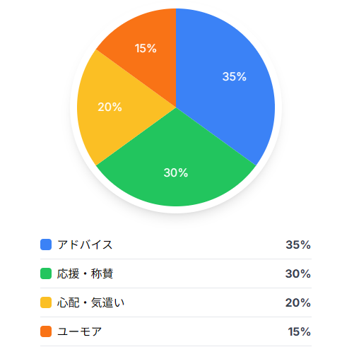 今回の分析では、渡辺さんの62日、63日目の報告に対して、体重が増加していることへの指摘のほか、食事内容や飲酒量についてのアドバイス、毎日のトレーニングを継続していることへの称賛、筋トレのやり方に関するアドバイスが多く見られました。