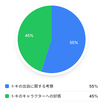 主な「トキの出自に関する考察」(55%)