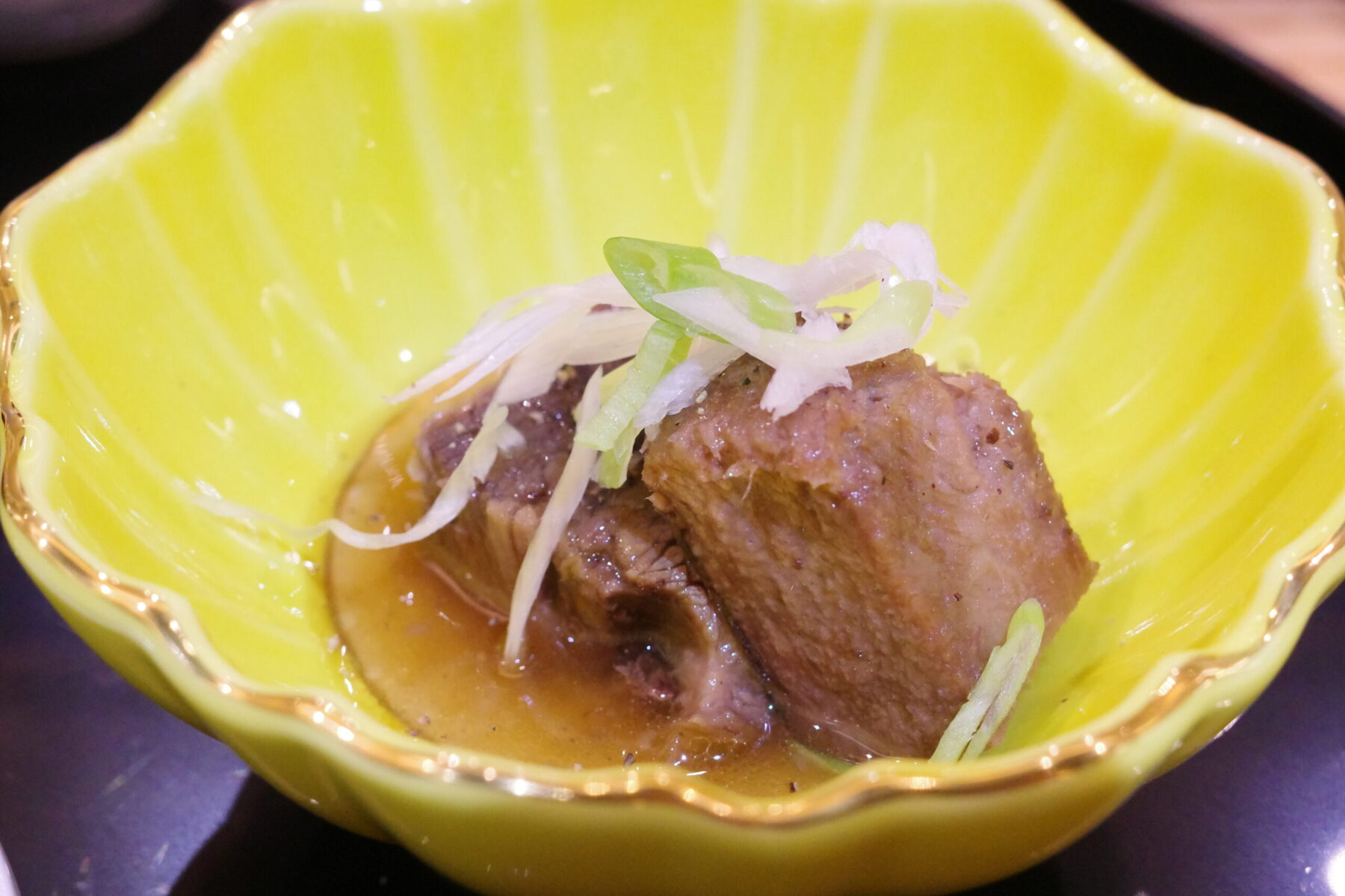 お肉料理は「牛タンの煮込み」。出汁の旨味がじんわりしみ込んで、ホロホロとほどける柔らかさ。日本酒とも相性抜群です。