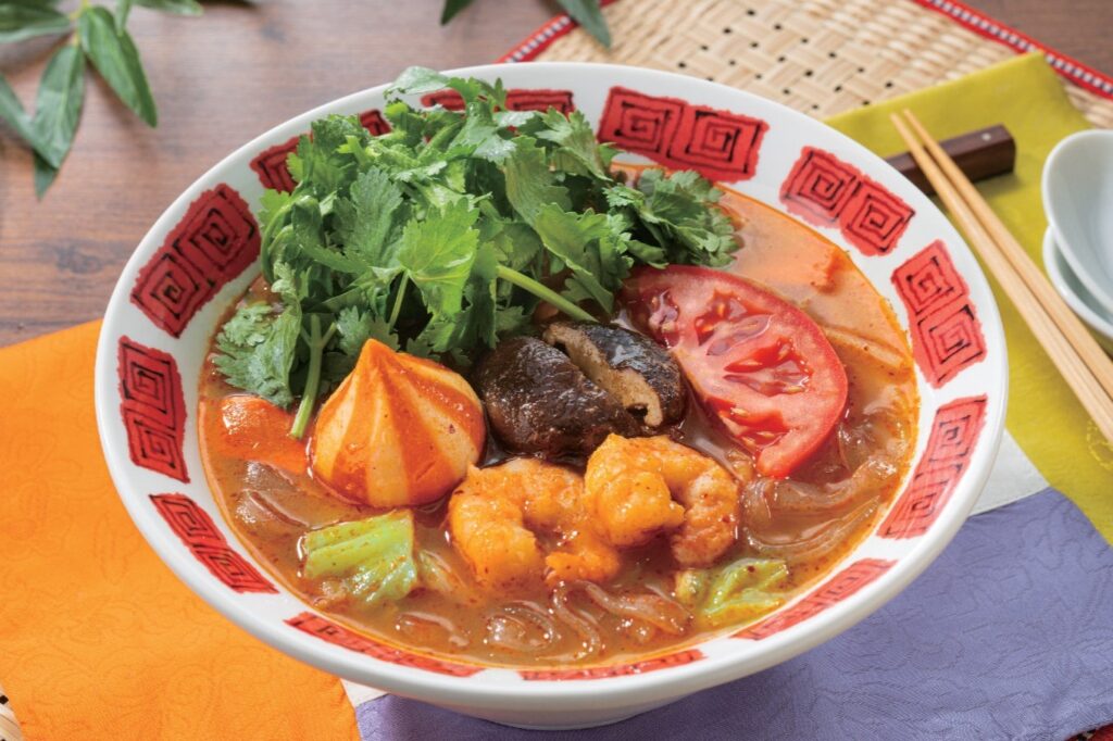 ナンプラーの旨味とレモンの酸味が効いた、エスニックなトムヤムスープ。