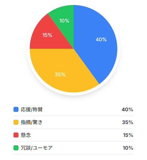 今回の分析では、渡辺さんのダイエットの取り組みについて、友好的な応援や軽い指摘、ユーモアあふれるツッコミなどの声が多く見られました。