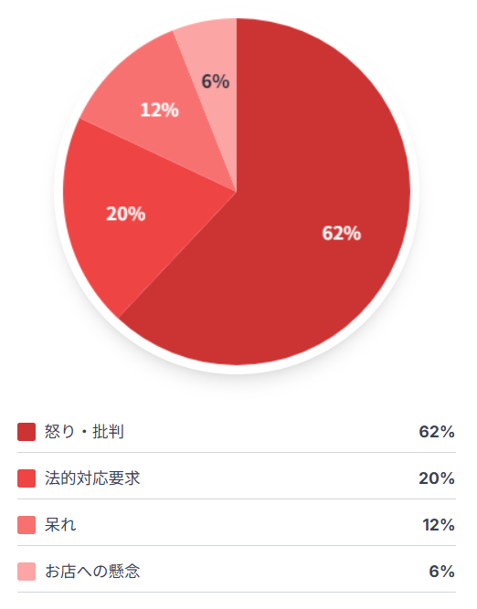 今回の分析では、くら寿司での迷惑行為に対して批判と怒りの声が大多数を占めており、多くのユーザーが実行者に対して厳しい処罰を求めています。過去に起こった同様の事例から損害賠償請求をするべきだという声もありました。「なぜこのような行為をするのか」という呆れの声もあり、全体的に厳しく対処することを望む声が多かったです。