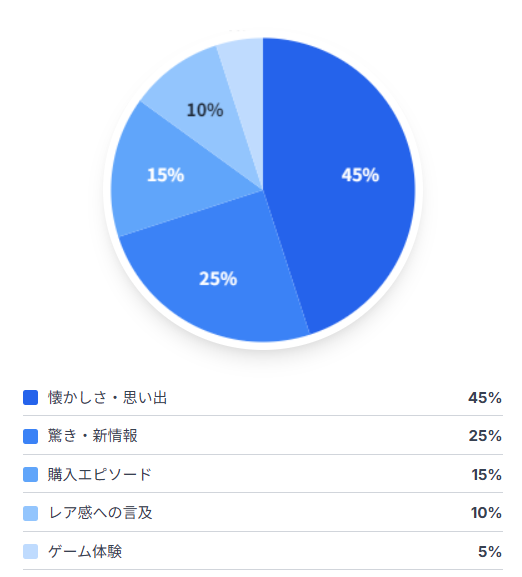 今回の分析では、10月15日が「ポケットモンスター青」の発売日だったこともあり、当時通信販売で手に入れた記憶のほか、コロコロコミックの応募や郵便局の振込といった「手間をかけた体験」を多くのユーザーが語っていました。