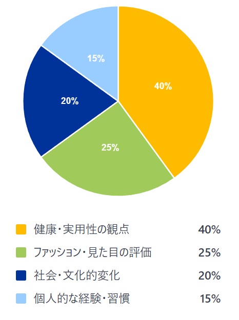 今回の分析では、多くの人が外反母趾や腰痛、膝痛などの健康上の理由から、そして、災害時の避難、長時間歩行の苦痛といった実用性の観点からハイヒールを敬遠する傾向にあるということが分かりました。とりわけ東日本大震災以降に履かなくなったという声が複数見られました。一方で、ハイヒールの見た目の美しさを評価し、特別な場面では履きたいという意見も多く、完全になくなることを惜しむ声もあります。社会的には、女性の働き方やファッショントレンドの変化、特に就活や職場でのハイヒール強制に対する批判的視点も見られました。
