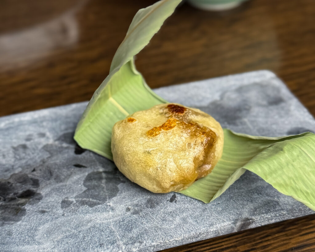 大きめサイズですので、 完熟梅と金木犀のソースをかけて、 華やかなさと爽やかさを加えた味の変化も一興です。