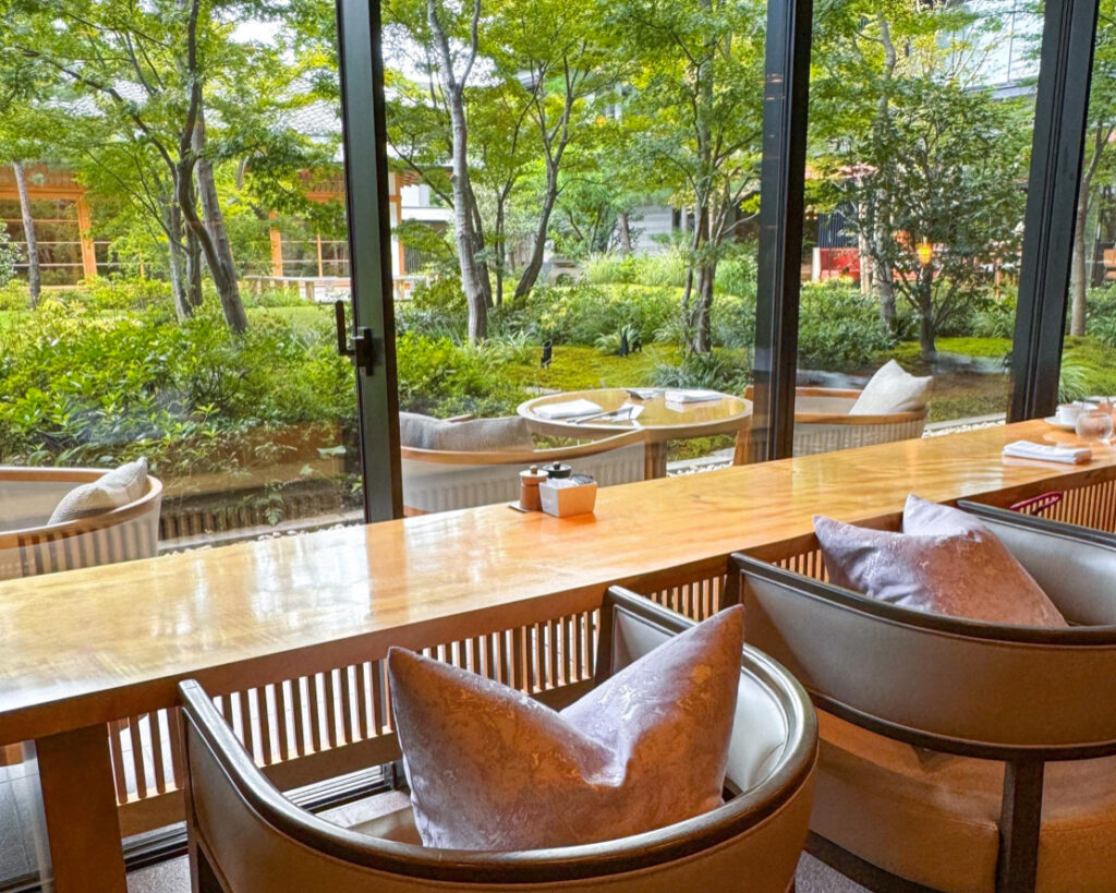 「HOTEL THE MITSUI KYOTO(ホテル・ザ・ミツイ・キョウト)」の1階にあるバー&ラウンジ「THE GARDEN BAR」ではそんな名物が味わえる「京丹波栗アフタヌーンティー2025」 が開催されています。