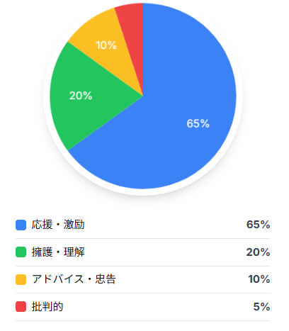 今回の分析では、コメントの大半は、プライベートな報道があっても髙橋藍選手のバレーボール選手としての活躍を応援する内容です。多くのファンが「プレーに集中してほしい」「応援している」「頑張って」といった前向きな激励を送っています。一部では「好感度を取り戻すにはプレーで示すしかない」「軽率な行動は慎むべき」といった厳しめの意見もありますが、全体としては温かい応援メッセージが中心です。「プライベートは自由」「報道は気にしなくていい」といった擁護的なコメントも見られました。