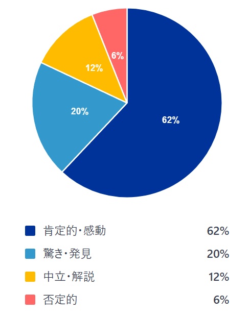 主な「肯定的・感動」の声 (62%)