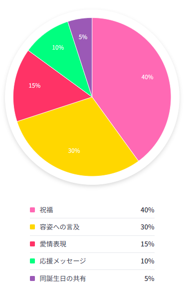 今回の分析では、直美さんの誕生日を祝福する言葉とともに、痩せて見える容姿に対する言及が多いことが分かりました。また、直美さんの笑顔やかわいさを称えるコメントや、感謝の気持ちを示すファンからのコメントも多いです。全体的に、直美さんへの愛情や応援の気持ちを表す温かいコメントであふれています。
