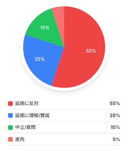 主な「延期に反対」の声(55%)