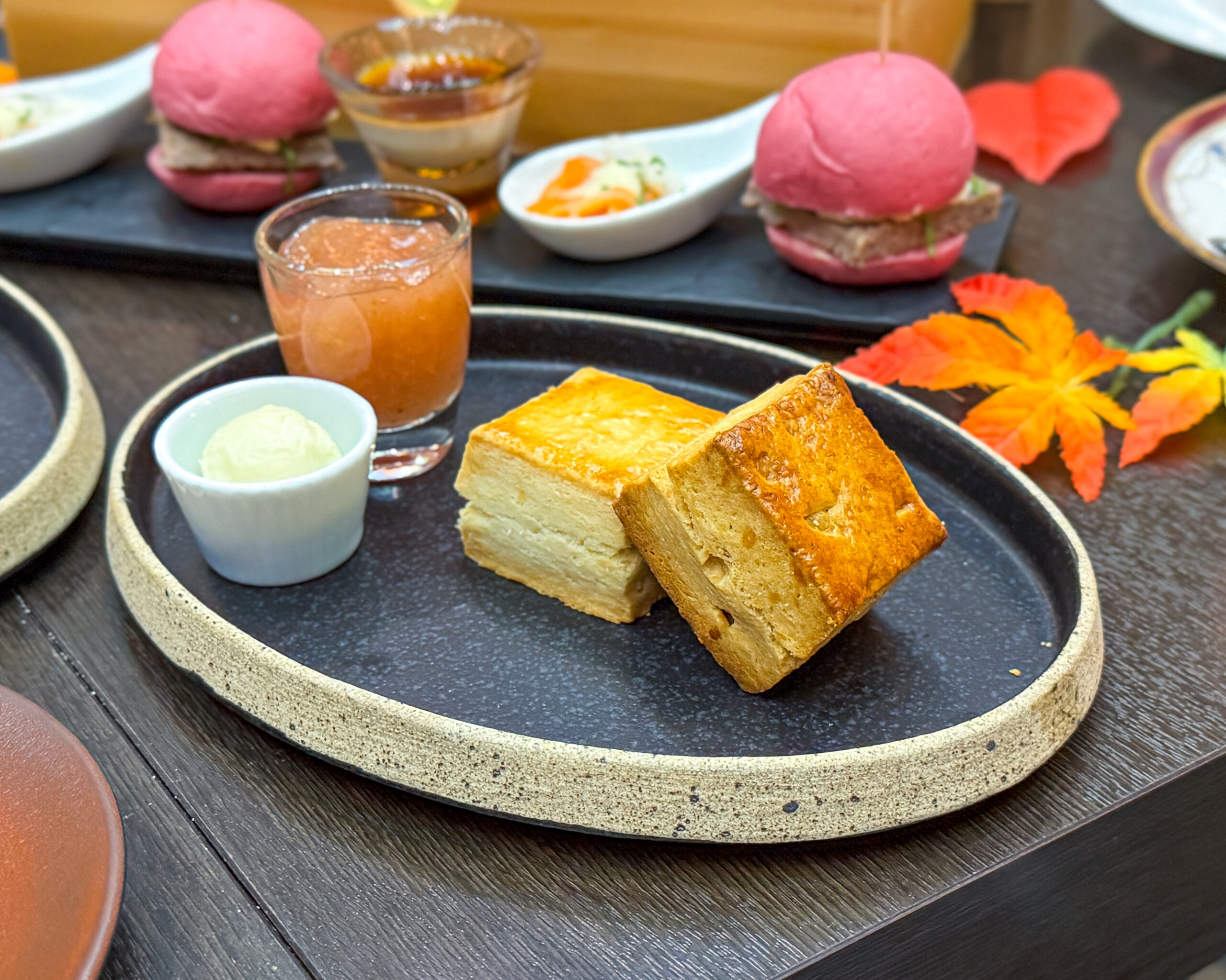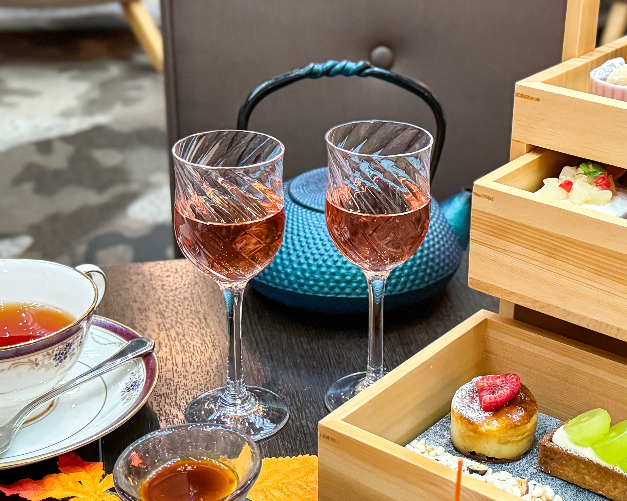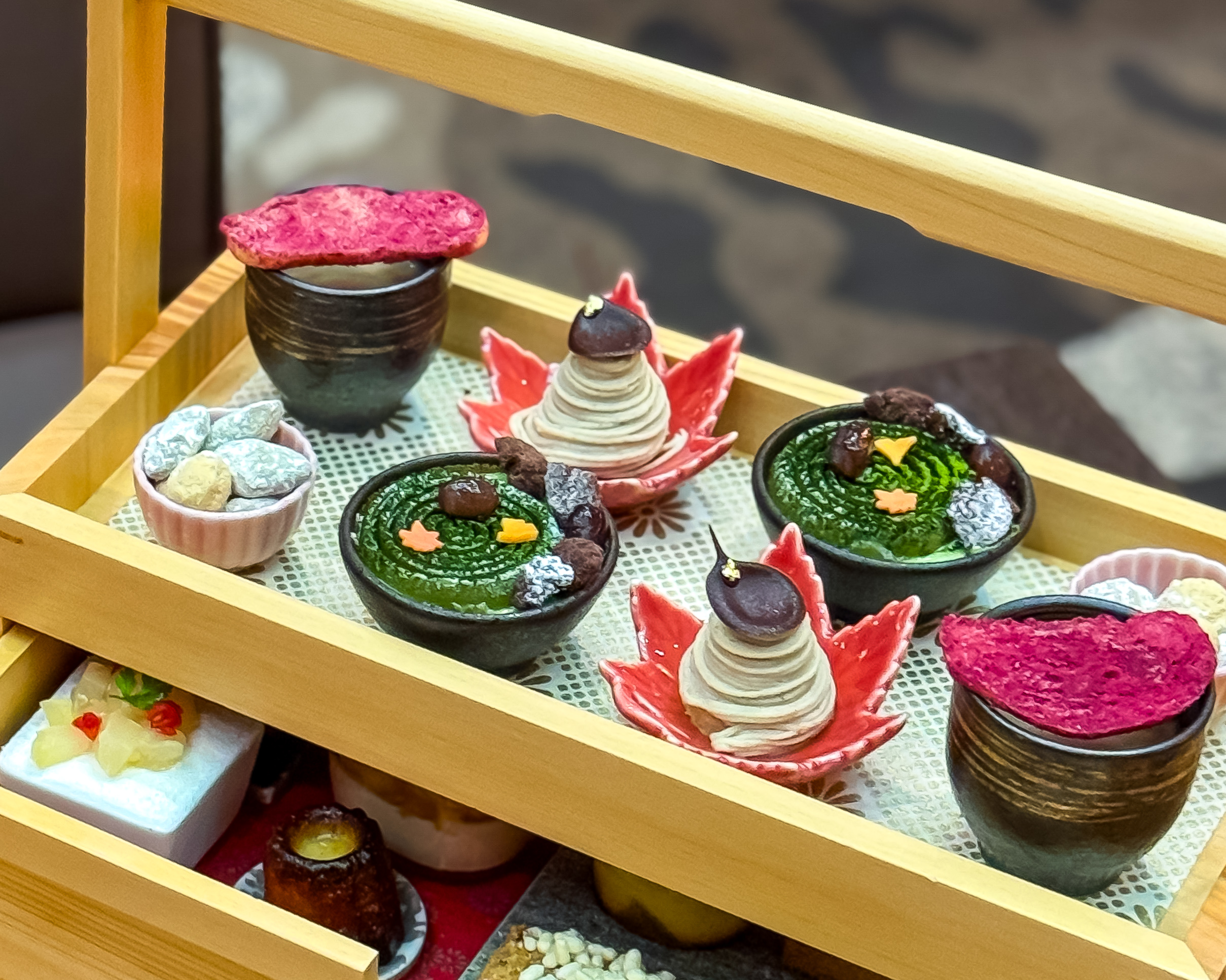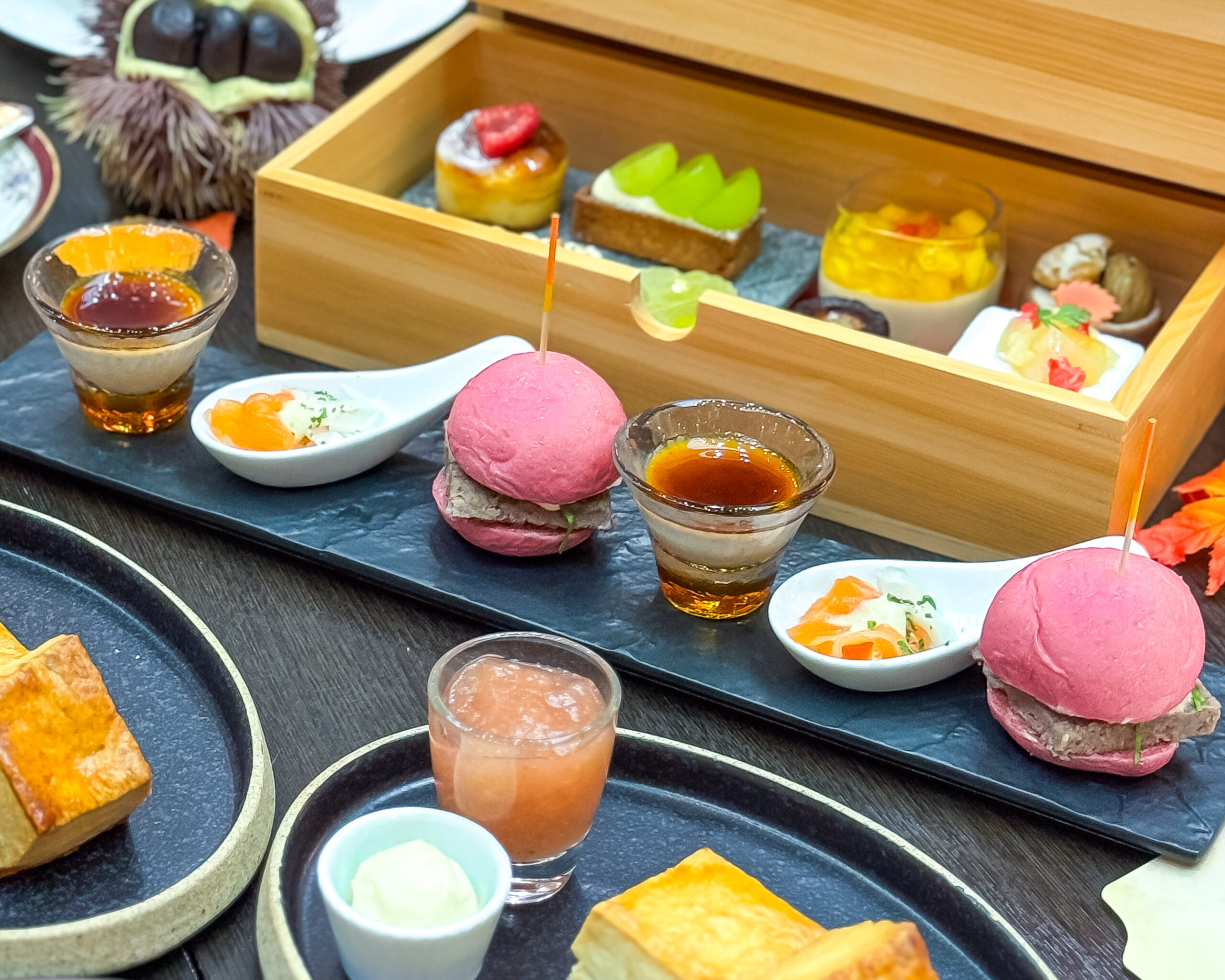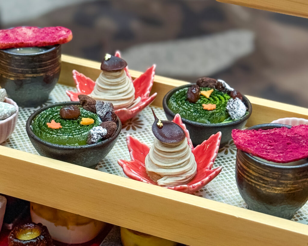 今回は和栗やイチジク、シャインマスカット、松茸など秋の味覚をふんだんに取り入れられていまティーフーズのビジュアルは繊細で食べやすいサイズなのも良い感じです。
