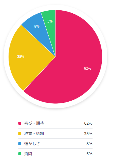 主な「喜び・期待」の声(62%)