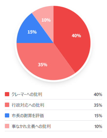 今回の分析では、写真を撤去した市の対応に対して「クレーマーに屈するな」と批判の声が集中。市長の謝罪と撤去は取り消されたものの初動対応の判断力の低さを問題視する声も多く見られました。少数意見に過剰に反応してしまう日本の「事なかれ主義」への批判の声も目立ちました。