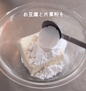 お豆腐150グラムに対し、片栗粉大さじ3を混ぜます。