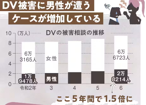 実は今、男性のDV被害が注目され始めています。相談件数はここ5年で1.5倍。でも専門家は「増えた」のではなく「表面化した」と分析しています。