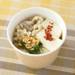 にんにくの香ばしい風味が効いた食べるほどにやみつきになるスープとのこと。具材には豚肉や豆腐をメインにキャベツ、持たしなどと使用しているそうです。
