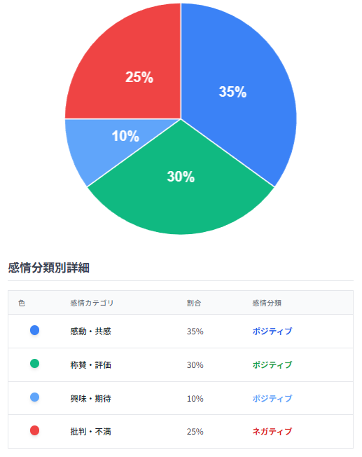 分析の結果、コメントは以下のように分類されました。