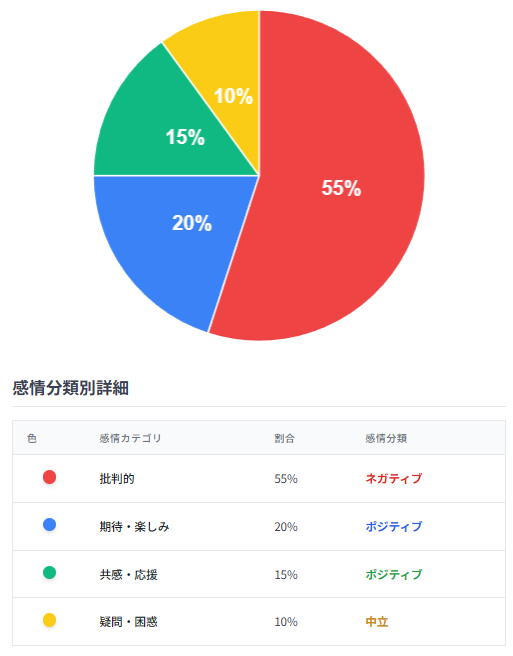 分析の結果、コメントは以下のように分類されました。