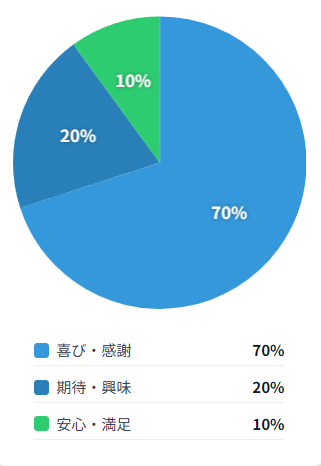 主な「喜び・感謝」のコメント(70%)