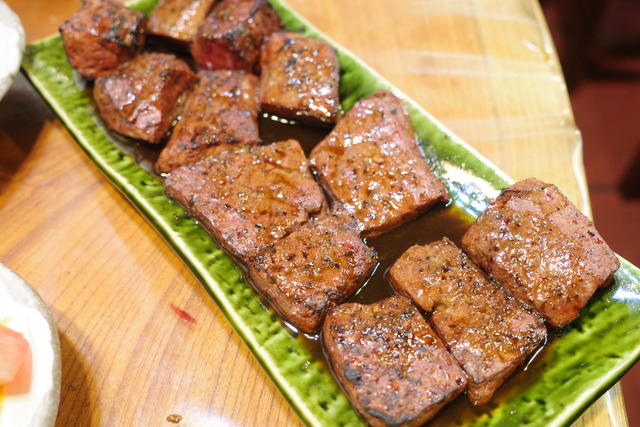 最後に忘れてはならないのが、牛レバたれ焼き。甘辛いタレが絡んでいて、噛むほどに濃厚な旨味が広がります。クセがなく食べやすいので、レバーが苦手な人にもぜひ試してほしいです。