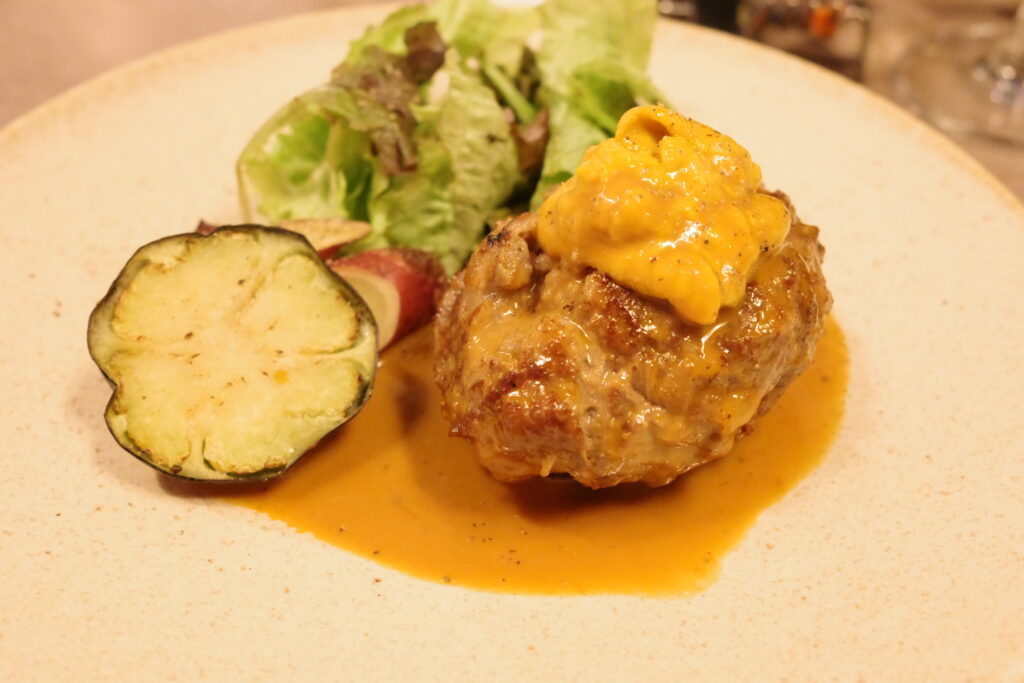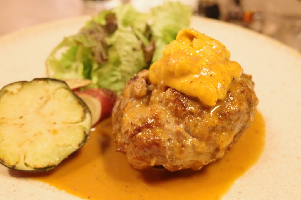 濃厚なウニが肉汁と合わさって口の中で溶け合う瞬間がたまりません。