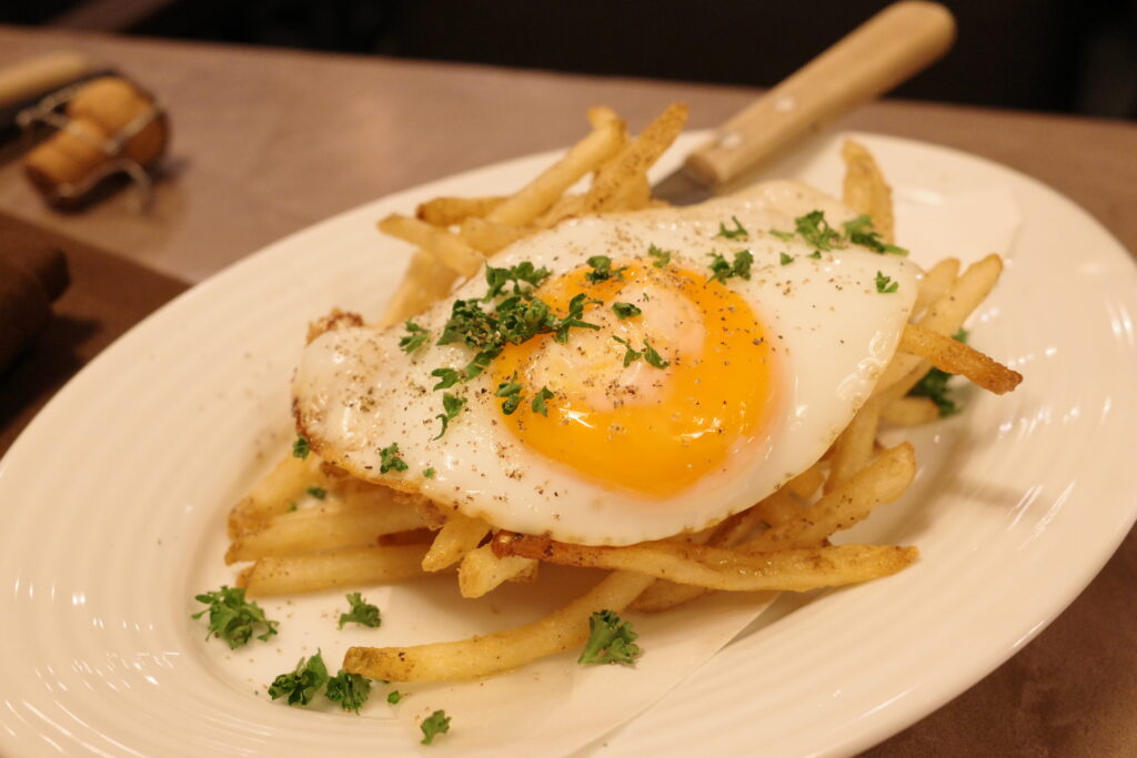 とろっとした目玉焼きの黄身を絡ませると、手が止まらなくなるおいしさです。