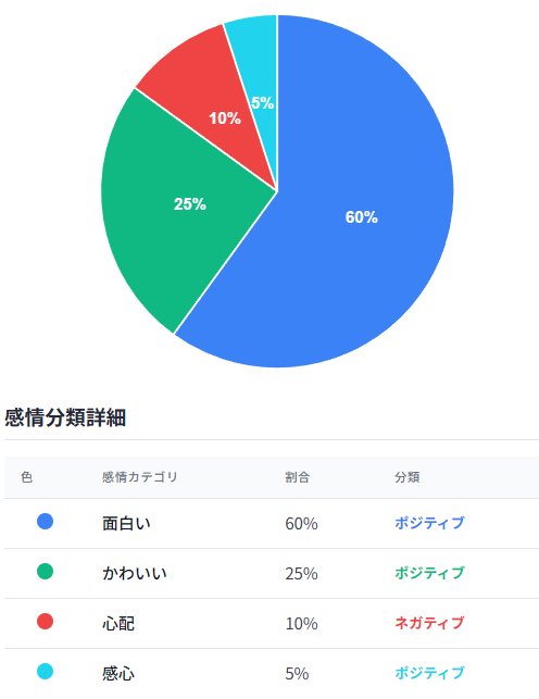 感情分析の結果、コメントは大きく以下のように分類されました。