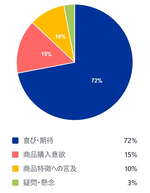 分析の結果、「喜び・期待」を中心に、コメントは以下のように分類されました。