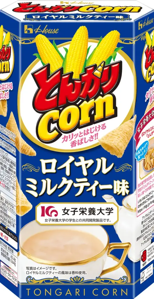 「ロイヤルミルクティー味のトンガリコーン!?日本は本気すぎる…おやつが一気に上品になったね🍵🌽✨」