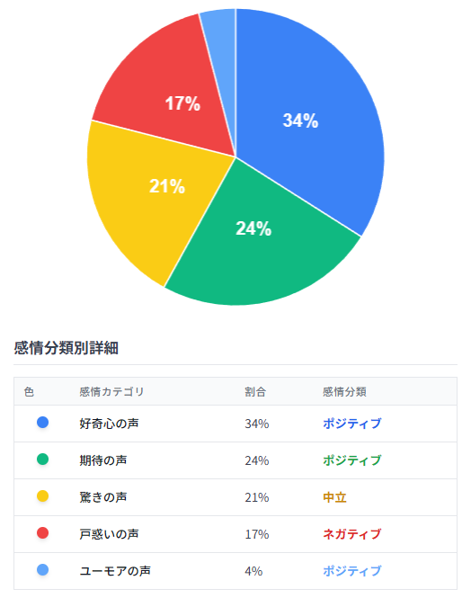 今回の新商品に対してはSNS上で多くのコメントが寄せられており、エモグラム編集部独自の分析の結果、新しい取り組みに対し期待や意外性への称賛の声が、多くみられました。