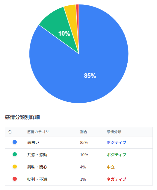 分析の結果、コメントは以下のように分類されました。