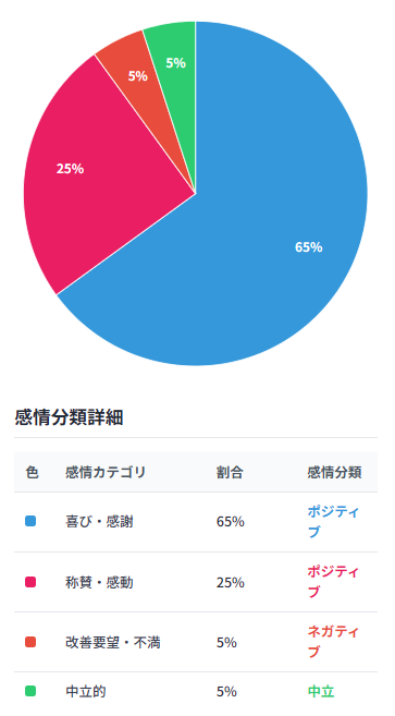 今回の分析では、イベントに対する感謝と称賛のコメントが多数寄せられていることが分かりました。コメントからは、B’z、MICHAEL MONROE、LOUDNESS、黒夢といったロックレジェンドが一堂に会した貴重な機会に参加者の多くが感動を覚えた様子が伝わります。写真についても称賛の声が多く、中には、ボーカリストたちが集まった構図に注目するコメントもありました。一部では会場の混雑やスタッフの誘導に関する改善点も指摘されていますが、全体としては感謝と喜びに満ちたコメントが大半を占めていました。
