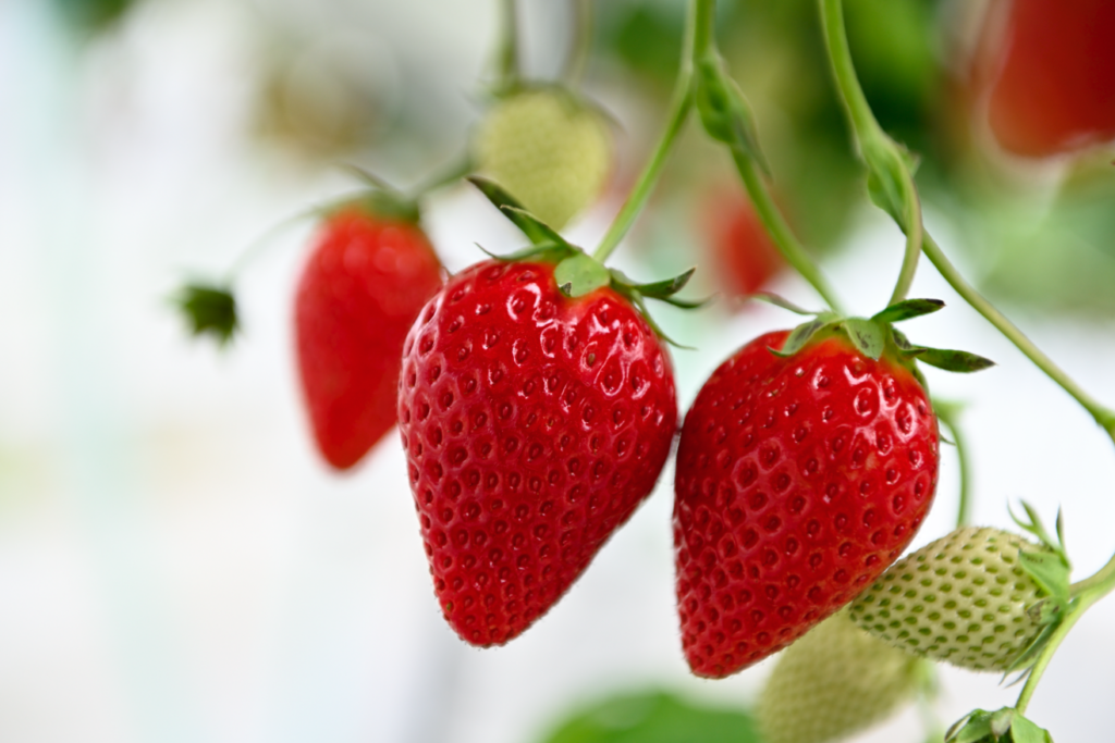 ほかにも、適度な酸味と際立つさわやかな甘み、大粒で明るい赤色の美しい見た目が特徴です。収穫期は12月~5月頃まで。章姫と同等の収量を確保しながら、果実が傷つきにくく、出荷時期も早いというメリットがあります。