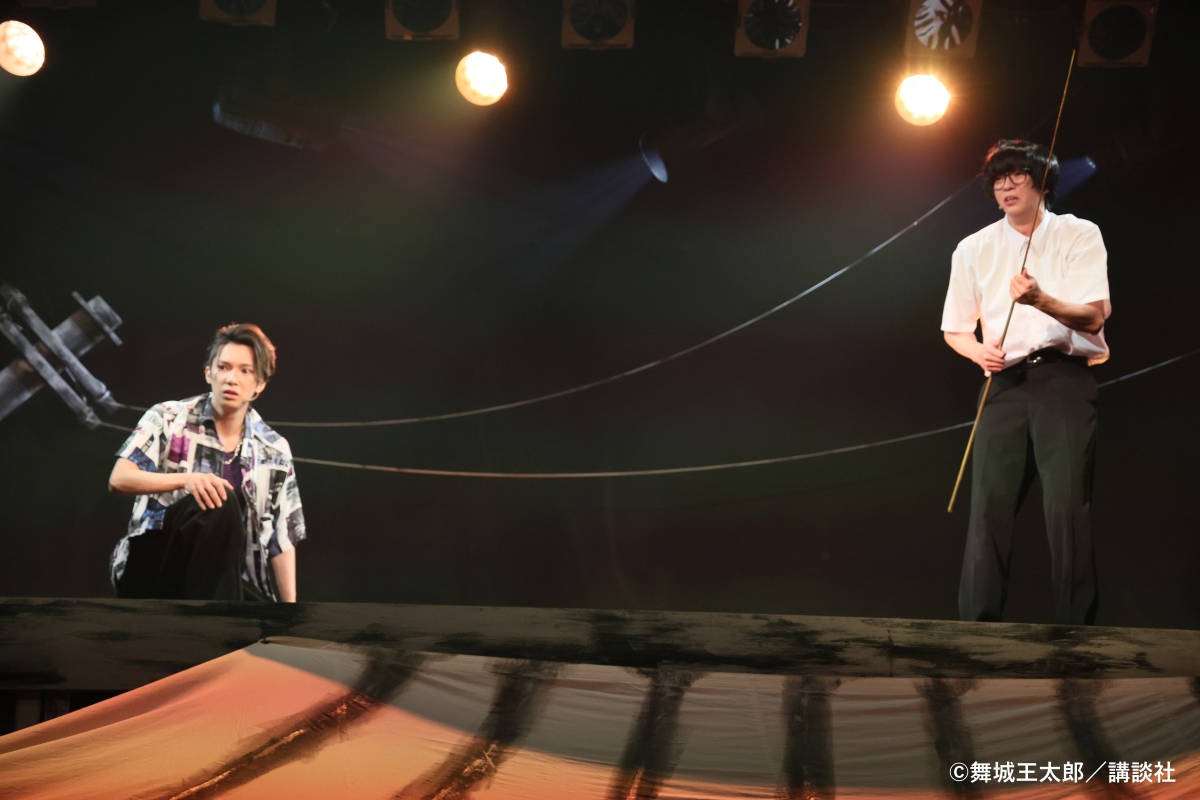 これについて、演出を手掛けた丸尾丸一郎氏は、パンフレットの中で「舞台化するなら小説とは違うカタルシスを出したい」「それには音楽が強い武器になる」とつづっており、実際に、全編通して、しばしばミュージカルの要素が取り入れられていました。