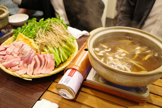 テーブルにコンロが運ばれ、お鍋の準備が整うと、ごぼうの香りをたっぷりと含んだ京鴨の出汁が良い香りを漂わせ始めます。