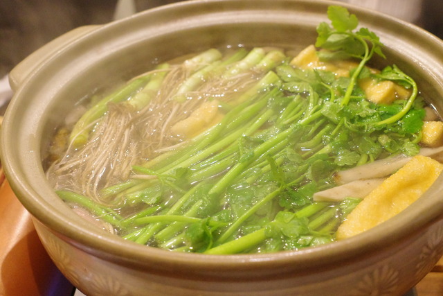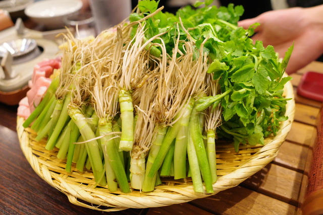 このお鍋の特徴は何と言っても、根っこまで丸ごと味わえる「せり」です。