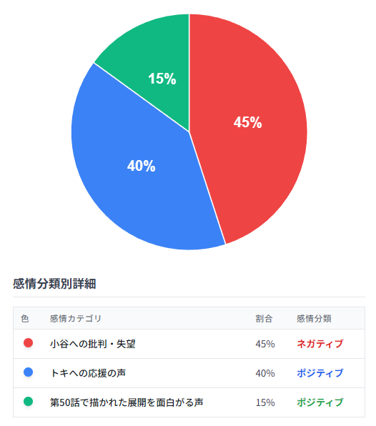 SNS上のコメントを見ると、 小谷が一方的にトキを振り、トキが怪談が「好き」といった言葉を自分に対するものと勘違いした場面への失望や批判が多く寄せられています。具体的には「自分から顔が好きだと言っておいて酷い振りようだな」「全く呆れた奴やな」「『私にはついていけません』って、なんじゃらほいですね」「おトキちゃんの〝好きです〟は小谷君の事ではありませんよー誤解しています(笑)」などの声が殺到していました。私(筆者)もこのシーンを見ていて、ここに寄せられたのと同様の感想を抱きました。
