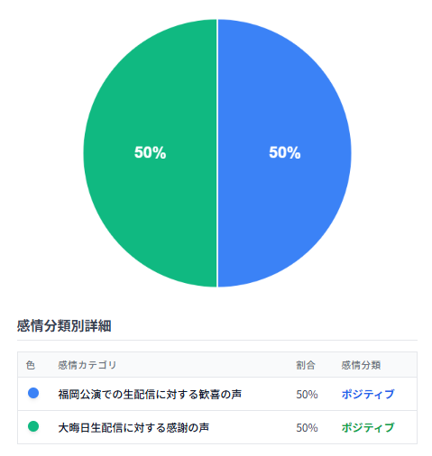 Snow Manのライブのユーチューブ生配信に対し、SNS上のコメントを見ると「感動した」「パフォーマンスが素晴らしかった」「メンバーの掛け合いが面白かった」などの圧倒的なポジティブな感想が寄せられていました。