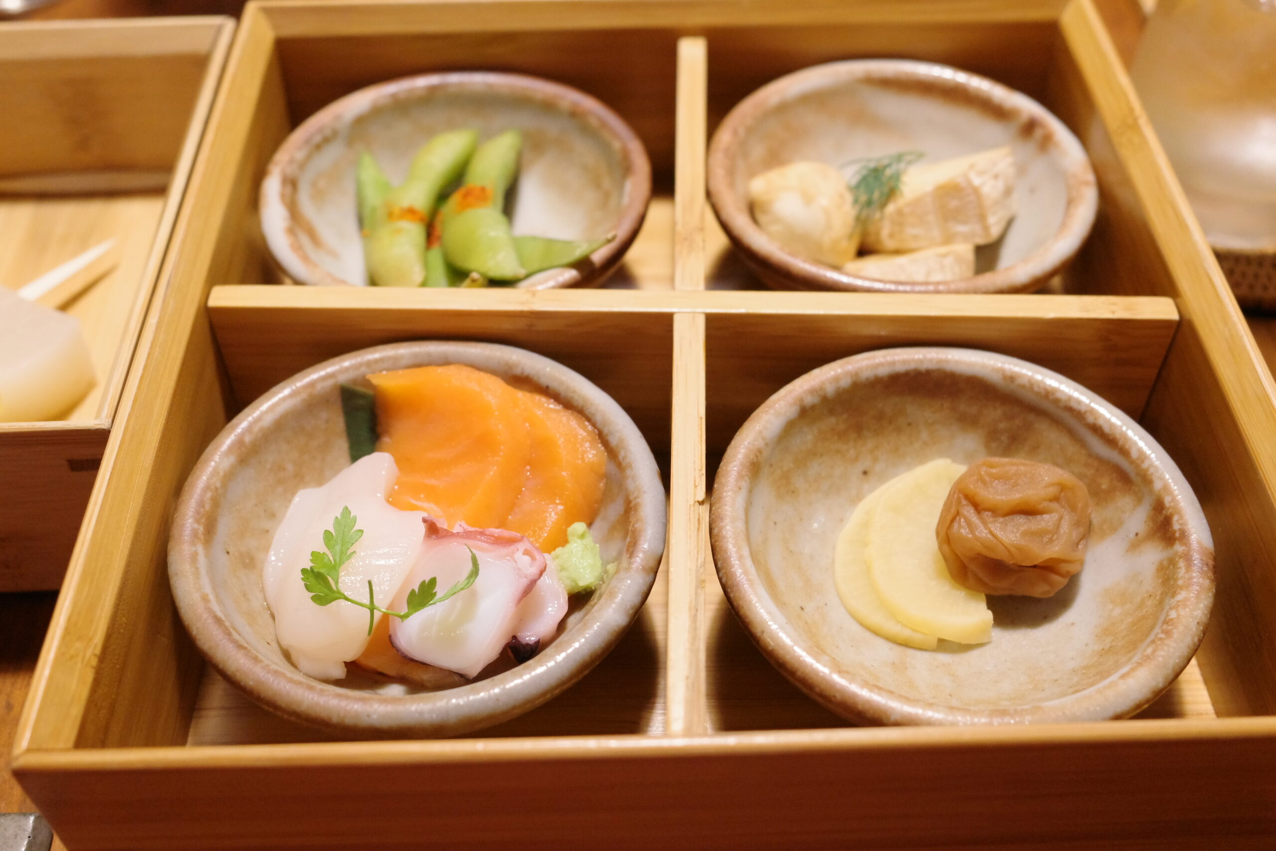 今回は「燻製調味料で食べる水炊き鍋コース(7500円)」をいただきました。 冷蔵庫の中にコースのお重や鍋のセットがずらりと用意されていて、自分たちのペースで進めていくスタイルです。
