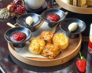 テーブルに運ばれてきた時から良い香りが広がるスコーンはリッチなバターミルクの風味とほんのりスパイスが効いていて、クロテッドクリームをたっぷり付けて食べるのがオススメです。