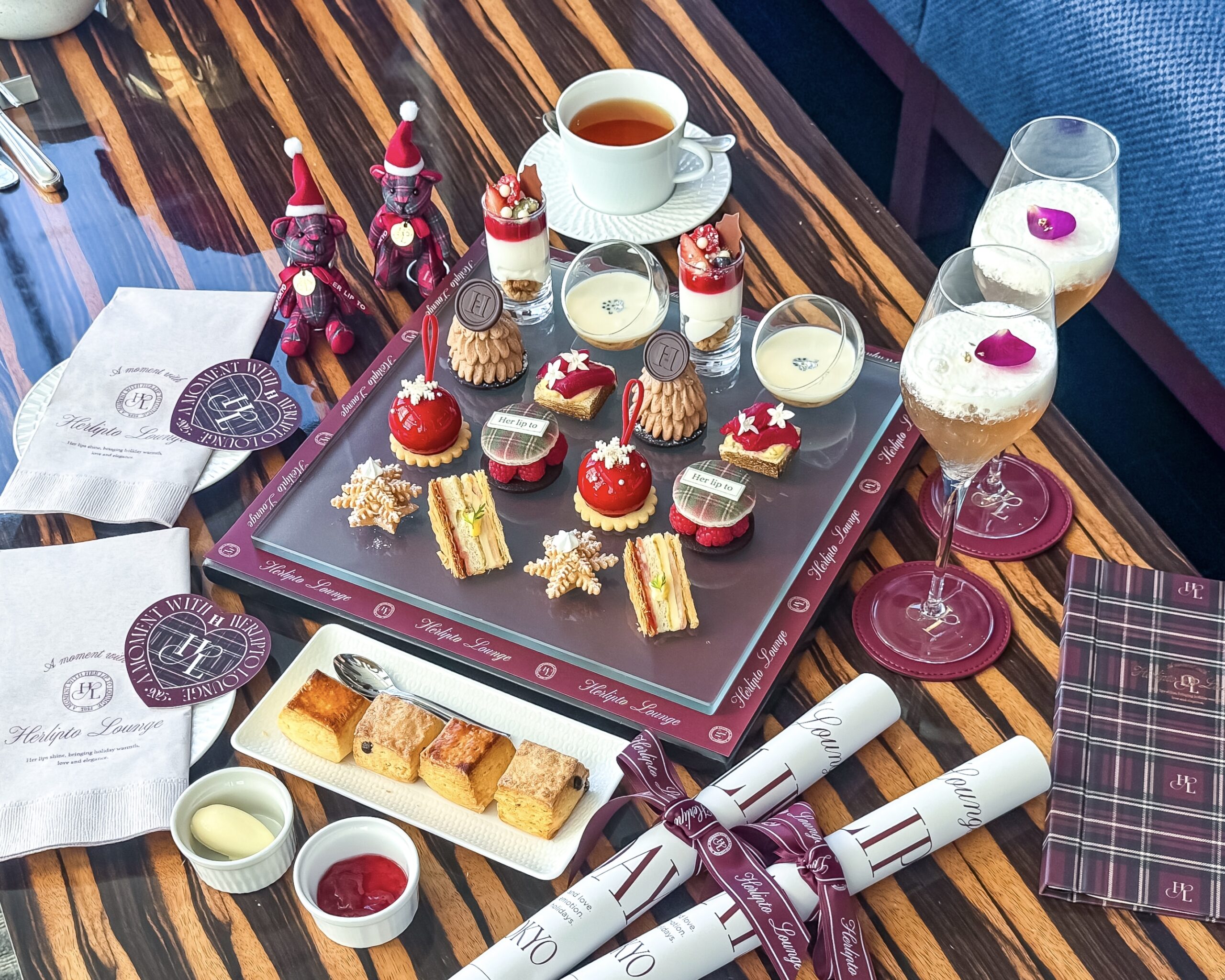 今回はコンラッドベア付きのプランに。 Her lip toの世界感を可愛くて美味しいアフタヌーンティーで堪能しました。