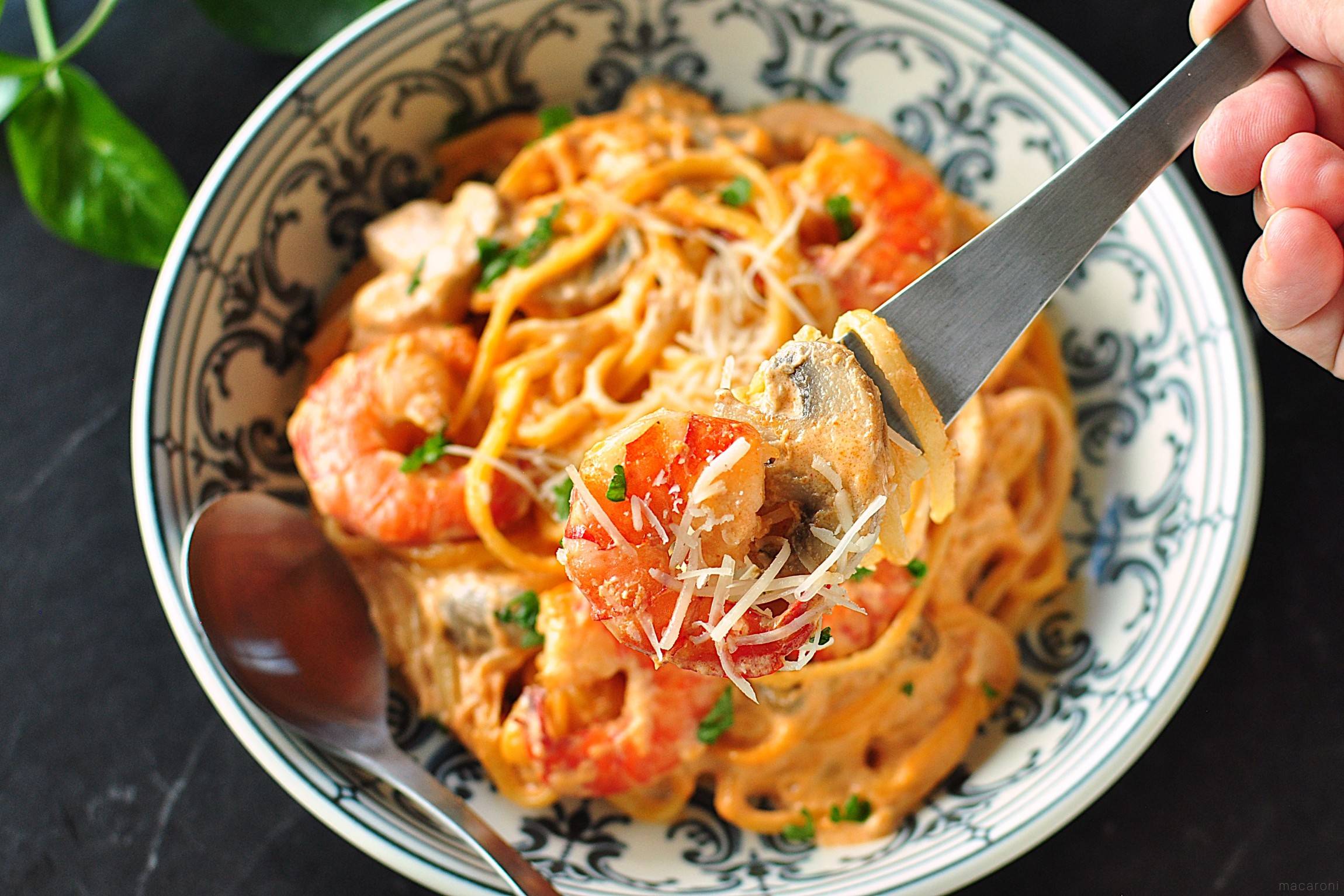 えびとマッシュルームの旨辛クリーミーパスタが韓国から上陸!