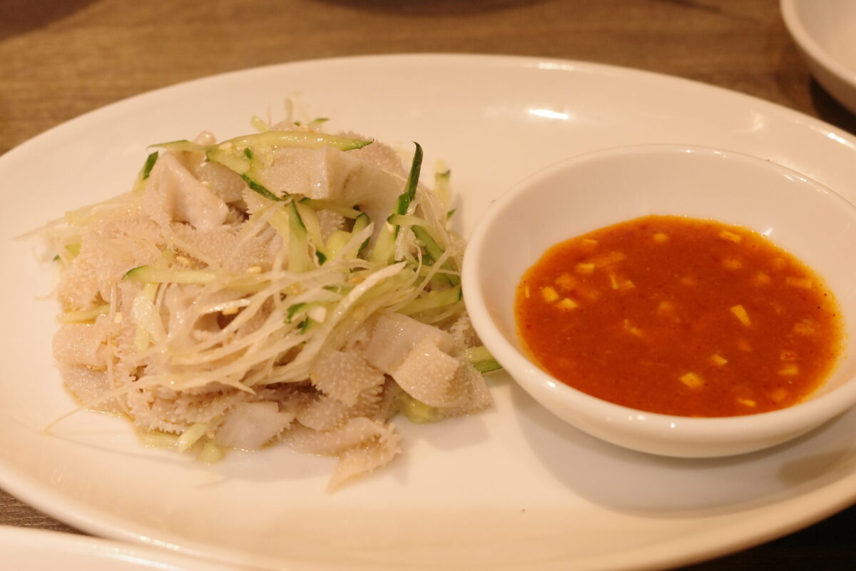 そして新鮮さが命の「センマイ刺し」。コリコリとした食感とピリッとタレが、たまりません。