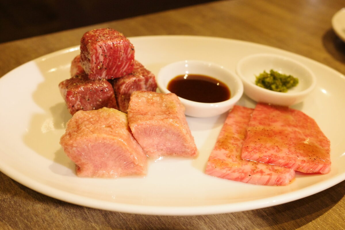 続いて「特上厚切り和牛」と「角切り和牛」。 A5黒毛和牛の中でも上質なものだけを厳選しているだけあって、脂の甘みが上品です。塩で食べることで、肉本来の旨みがダイレクトに伝わってきます。