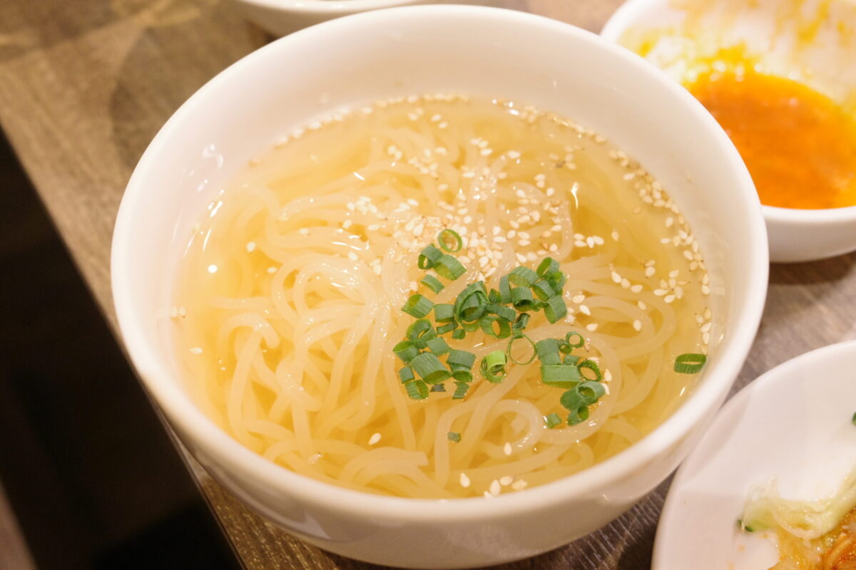お肉を存分に楽しんだ後は、「特製冷麺」でさっぱりと。 ツルッとした喉越しの麺と、出汁の効いた冷たいスープが、熱くなった口の中をクールダウンしてくれます。